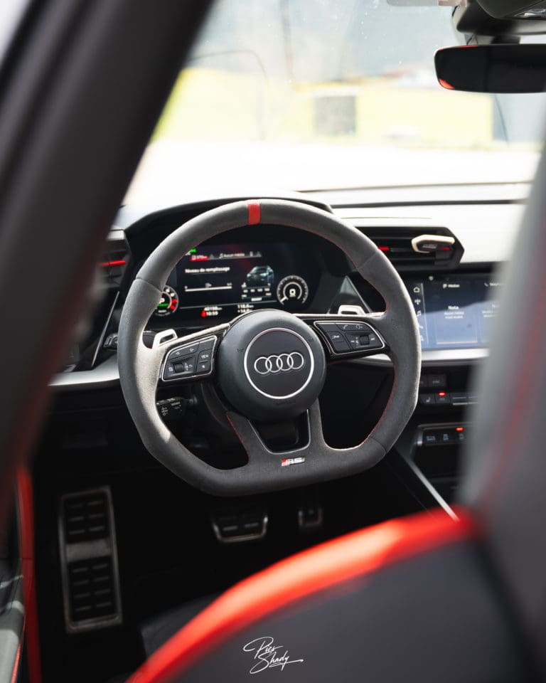 L’audi RS3 2024 est équipée d’un moteur transversal avant, 5 cylindres de 2480cm3, 20 soupapes injection direct suralimenté d’un turbo